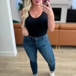 Los jeans ajustados con dobladillo y lavado oscuro Amber son justo lo que necesitas para esta próxima temporada. ¿A quién no le gusta un denim elastizado con lavado oscuro, corte ajustado, tiro medio y dobladillo con dobladillo? ¡Estos jeans ultra favorecedores son justo lo que le falta a tu armario!