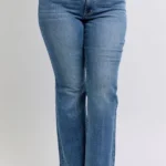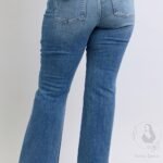 Luce un estilo impecable con estos jeans acampanados de talle alto y color tintado. Diseñados con una favorecedora cinturilla de doble botón, estos jeans se ajustan a las caderas y los muslos antes de ensancharse desde la rodilla para lograr una silueta atemporal que estiliza la figura.