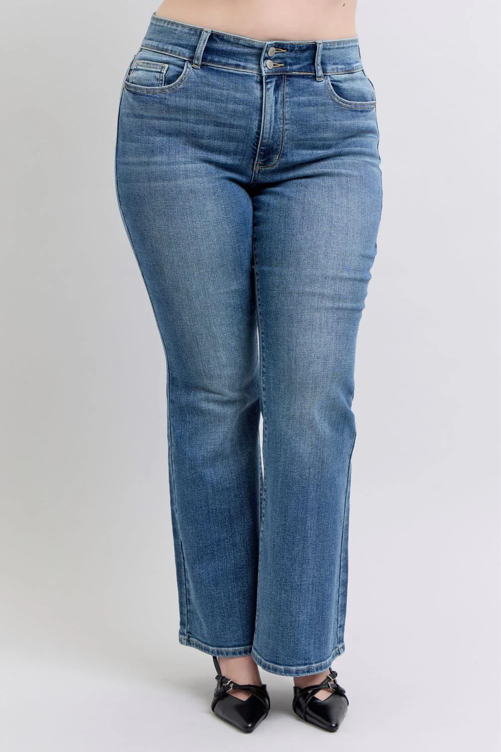 Cintura alta con doble botón para mayor forma y sujeción.