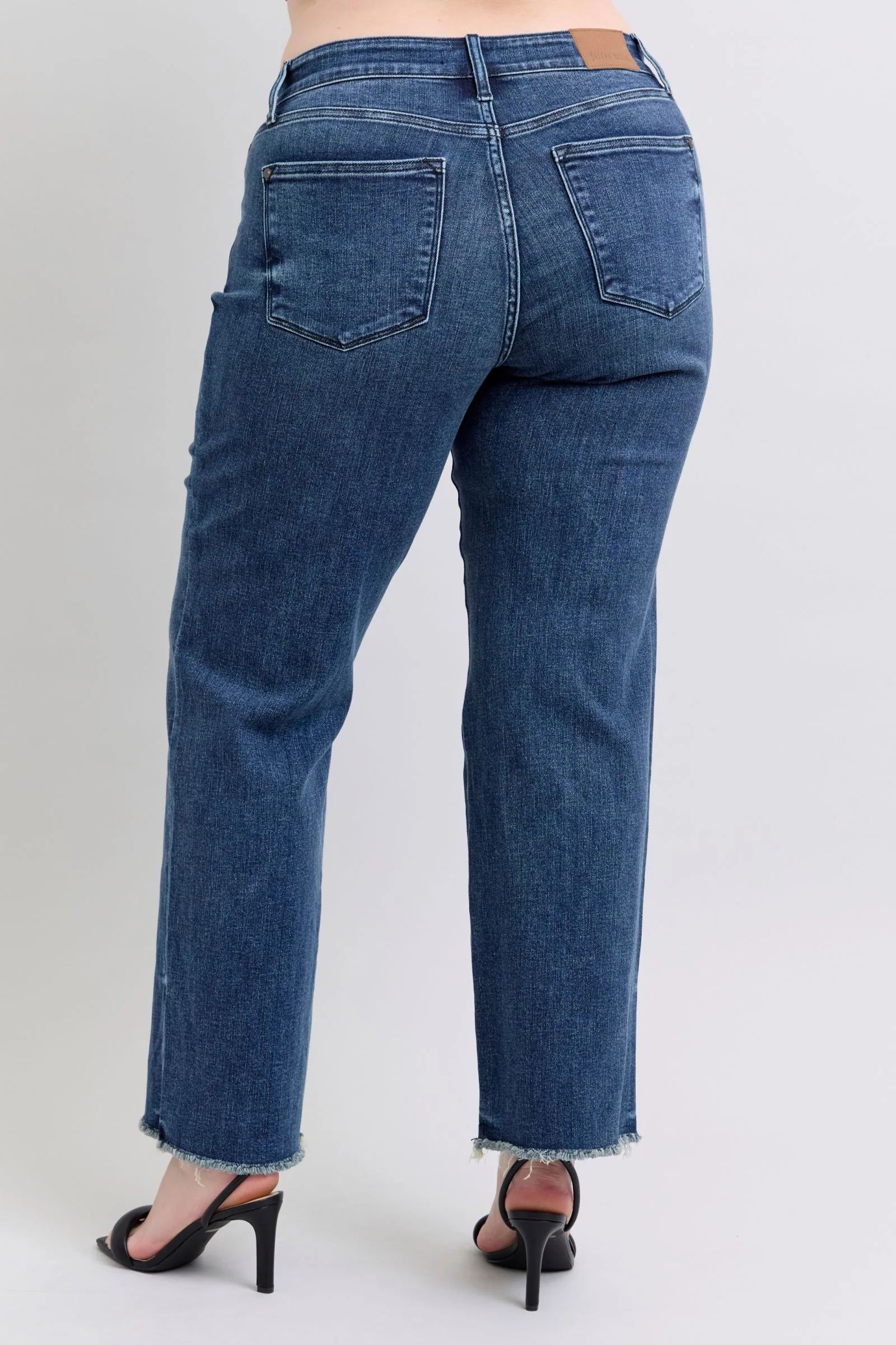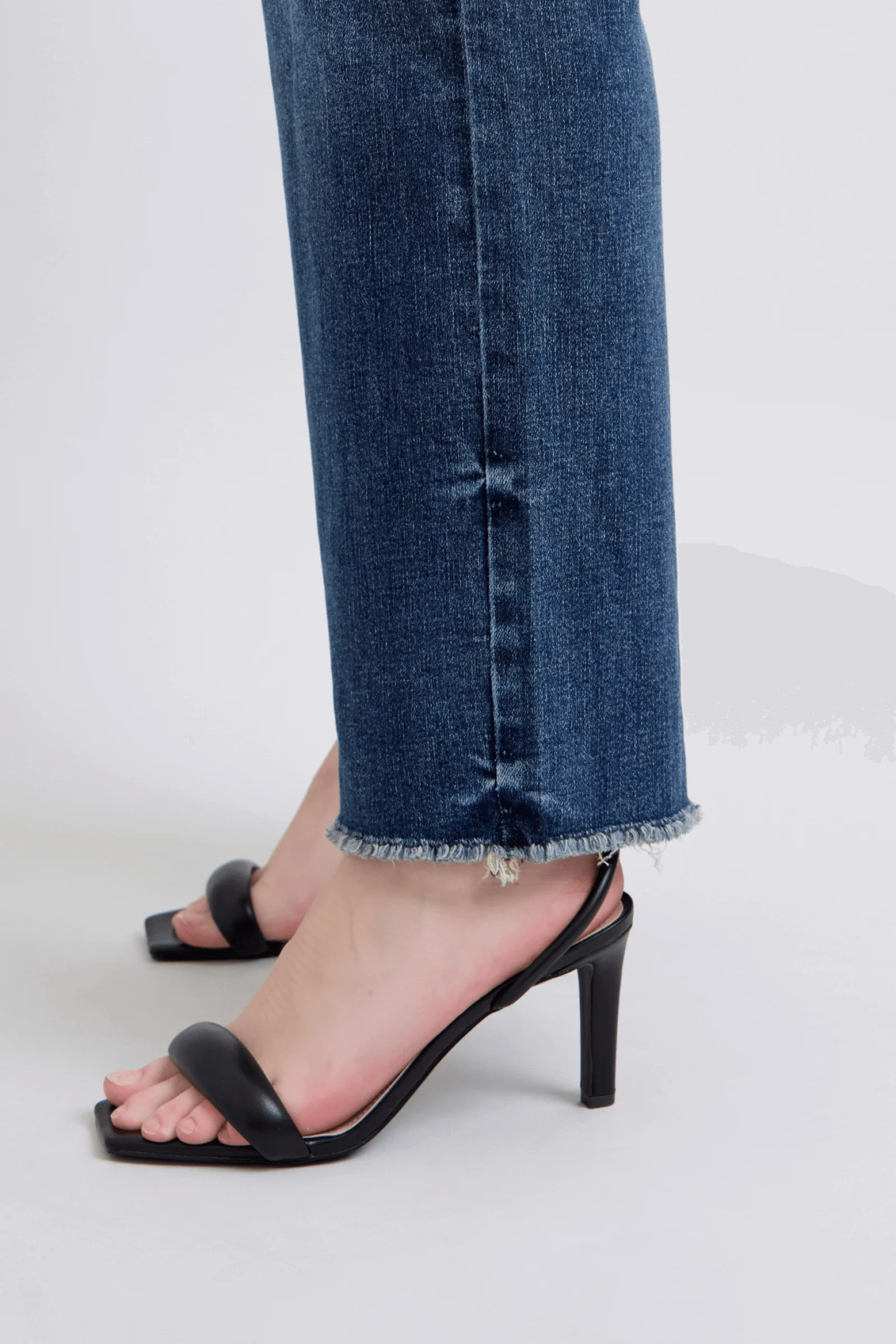 Corte de pierna ancha: corte ancho a lo largo de la pierna, comenzando a ensancharse alrededor de la mitad del muslo y luego continuando hacia abajo hasta una abertura de pierna ancha.