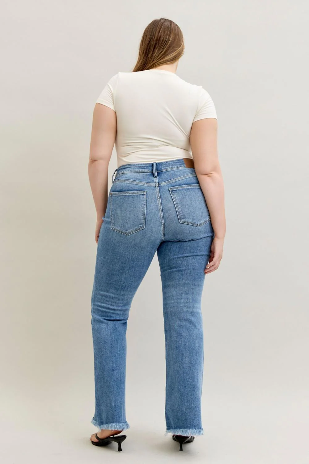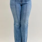 Déjate seducir por el estilo retro con estos jeans acampanados de talle alto. Diseñados con un favorecedor detalle de pliegues en la parte delantera y un dobladillo deshilachado , combinan el encanto vintage con la elasticidad moderna para crear una prenda vaquera que no pasará desapercibida. Perfectos para combinar con botas o zapatillas, estos jeans acampanados se convertirán rápidamente en tus favoritos.
