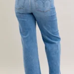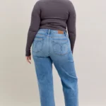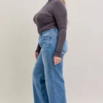 Corte retro de pierna ancha: holgado en el muslo y acampanado desde la rodilla para una silueta clásica inspirada en los pantalones.