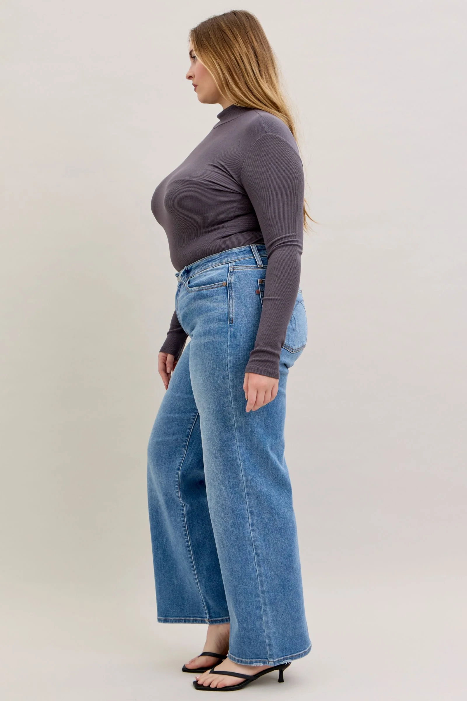 Con una silueta atemporal y un toque vintage, ell moelo Mid Rise Retro Wide Leg ofrecen un ajuste favorecedor con toda la comodidad y elasticidad que caracterizan nuestros jeans. Su impecable lavado medio y su diseño de tiro medio crean un look sencillo que estiliza la figura y combina a la perfección con todo, desde botas hasta cuñas.
